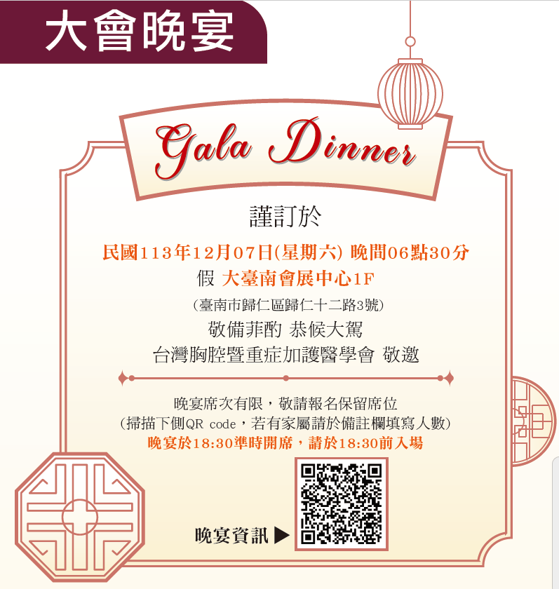 1.晚宴於18:30準時開席,請務必18:30前入場,逾時者視同放棄並釋出席位。